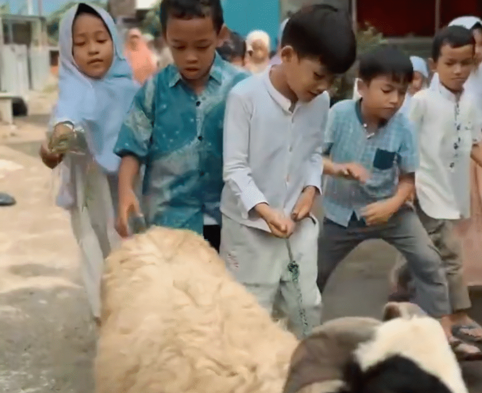 Pagi itu, dengan wajah berseri-seri, anak-anak mengikuti “Latihan Berqurban”. Ini bukanlah qurban sungguhan, melainkan sebuah praktik simbolis yang sangat bermakna. Mereka dengan bangga membawa infak qurban yang sudah disiapkan, lalu bersama-sama mengantarkannya ke masjid dekat sekolah.
